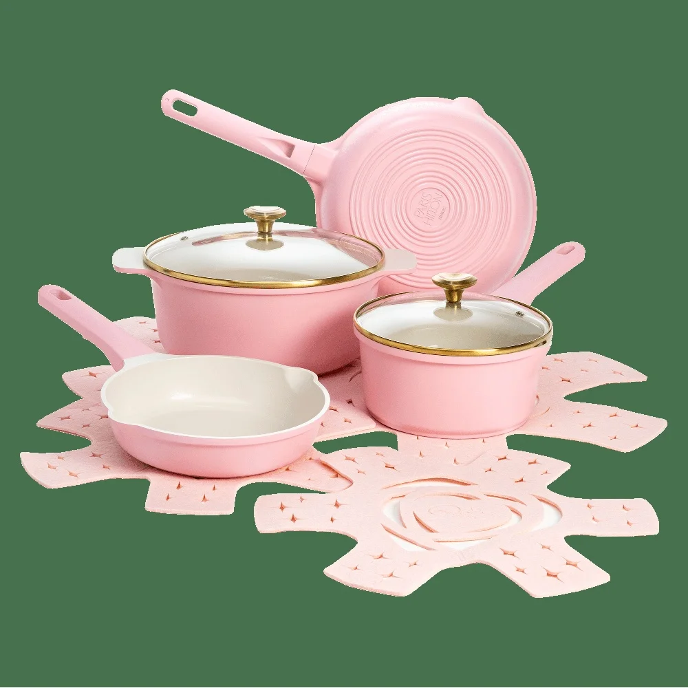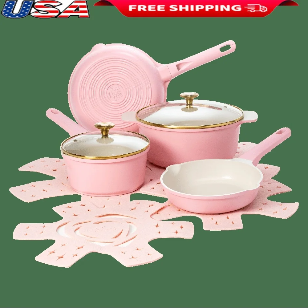 10 Piece Clean Ceramic Nonstick Cookware Set with Heart Shaped Knobs Fast Heating Durable Cast Aluminum Dishwasher Safe Home