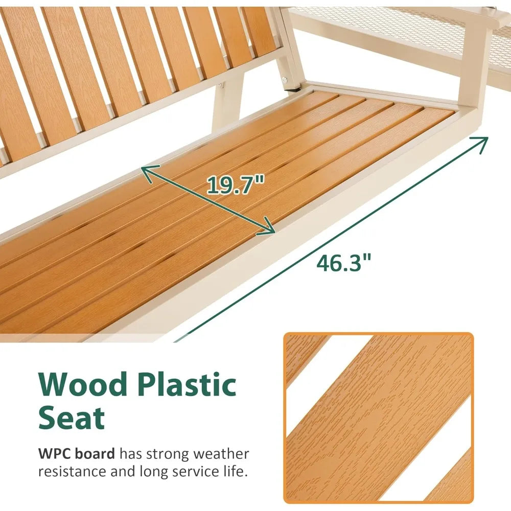 - [Sturdy Structure] - patio swing made of widened and thickened iron frame, WPC material seat and well-designed spring hook for a strong structure and extend the time of use.