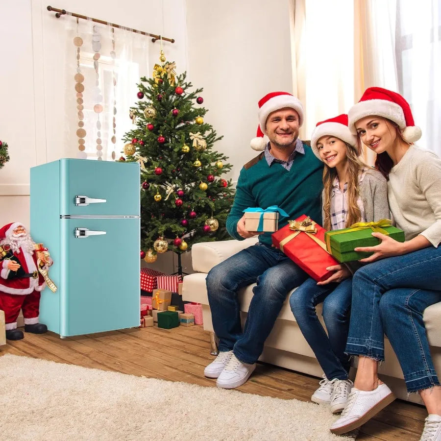 XMSJ Retro Mini Fridge With Freezer Two-Door 7-Settings