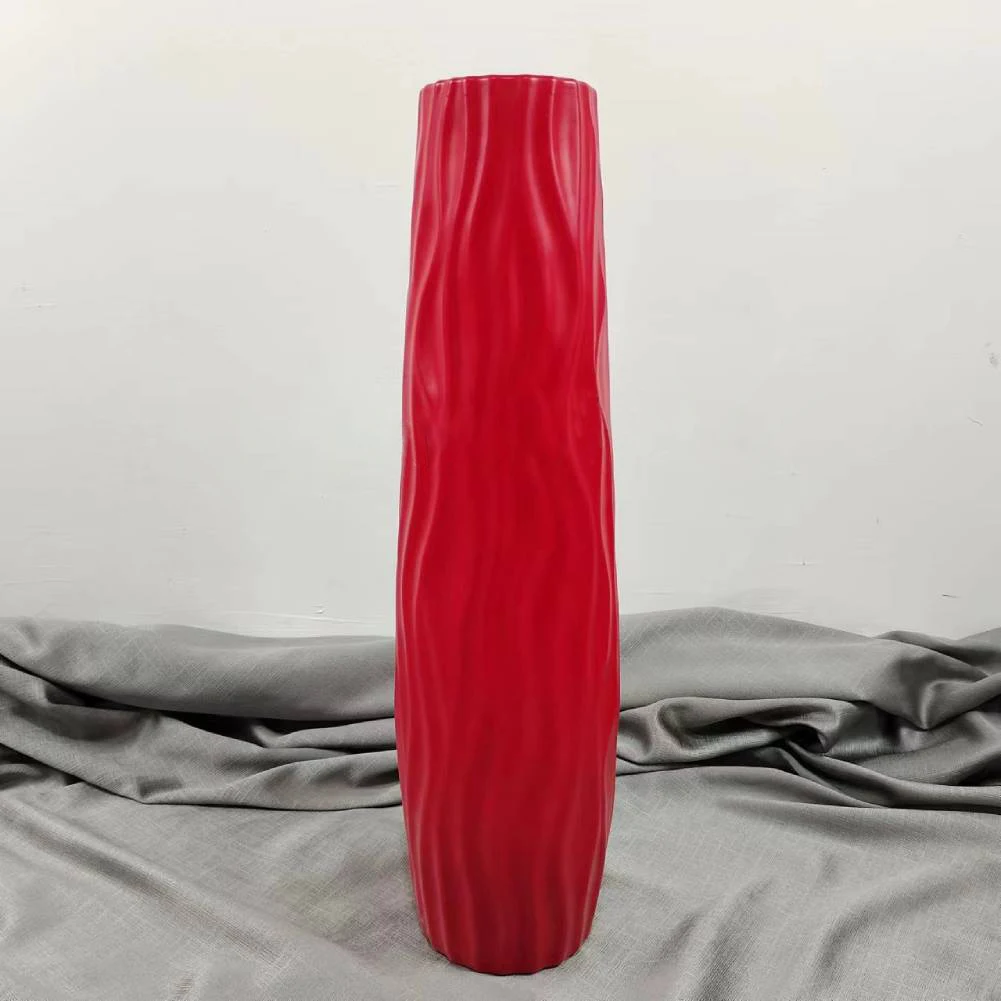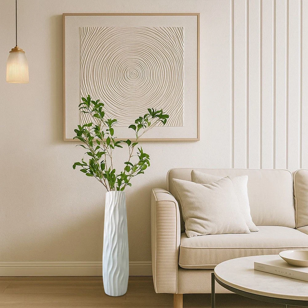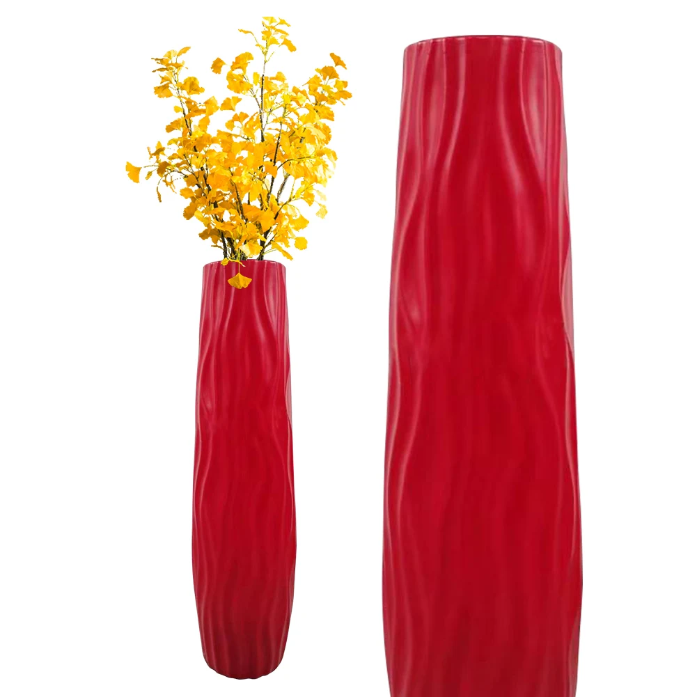 Elevate your living space with the Shunmaii Exquisite Line Textured Floor Standing Vase, a tall, elegant statement for any room.