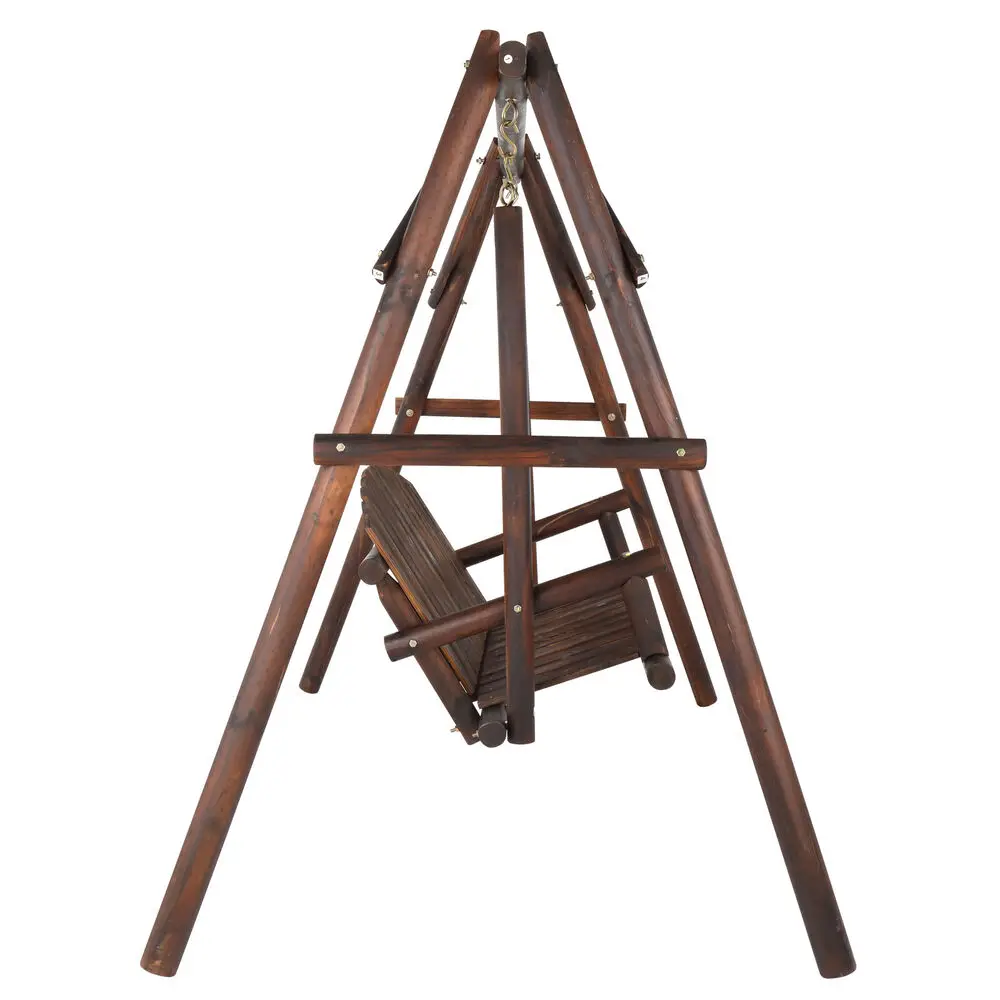 Freestanding Wood Adirondack Swing Rustic Farmhouse Style 2 Person