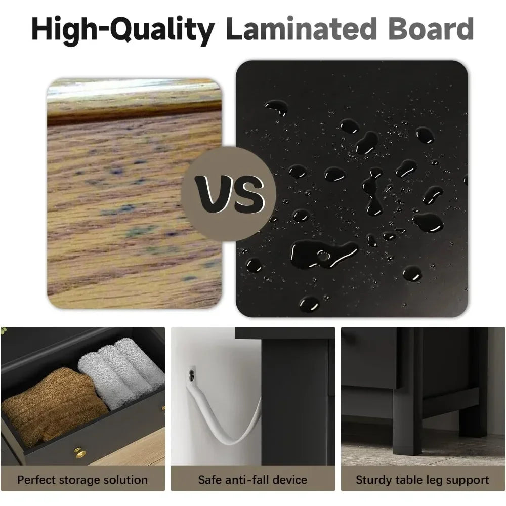 - Sleek, versatile design: black finish with classic gold double handles adds modern, minimalist style that complements any room and doubles as a bedside table or TV stand.