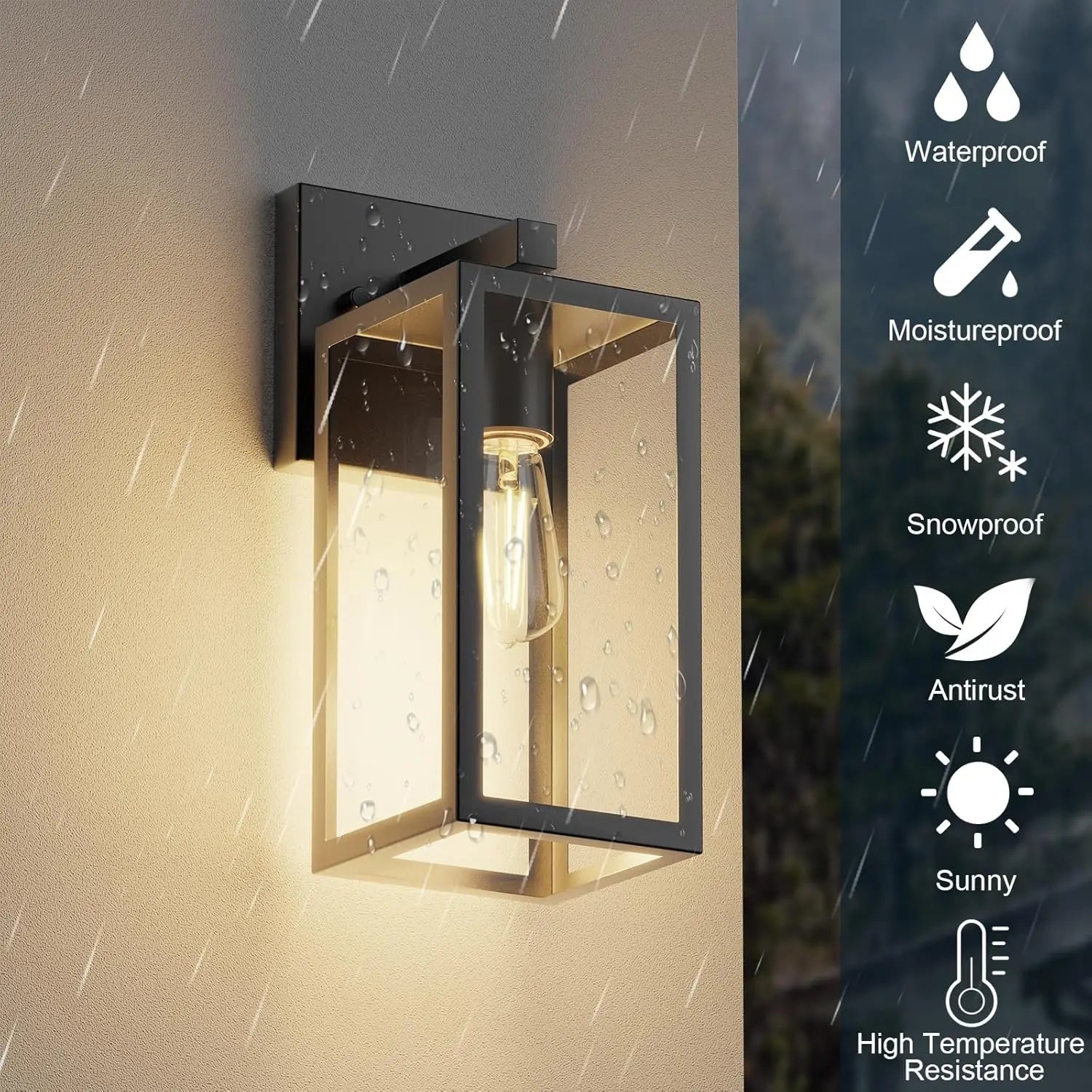 - 【High-Strength Transparent Glass】Unlike ordinary glass wall lights, our outdoor lights for house are designed with 4 high-strength transparent tempered glass panels, which are not easy to break, stable, and durable enough. It allows the exterior lighting fixtures to illuminate the house with bright light and also showcases your choice of bulbs to create a beautiful lighting ambiance.