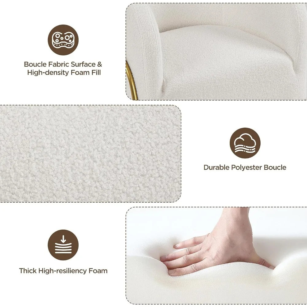 MKDK Boucle Fabric Accent Chairs With Gold Legs Living Room