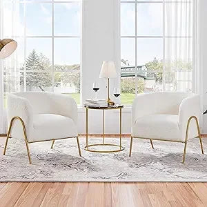 MKDK Boucle Fabric Accent Chairs With Gold Legs Living Room deliver cozy comfort and modern flair in a compact, versatile pair.